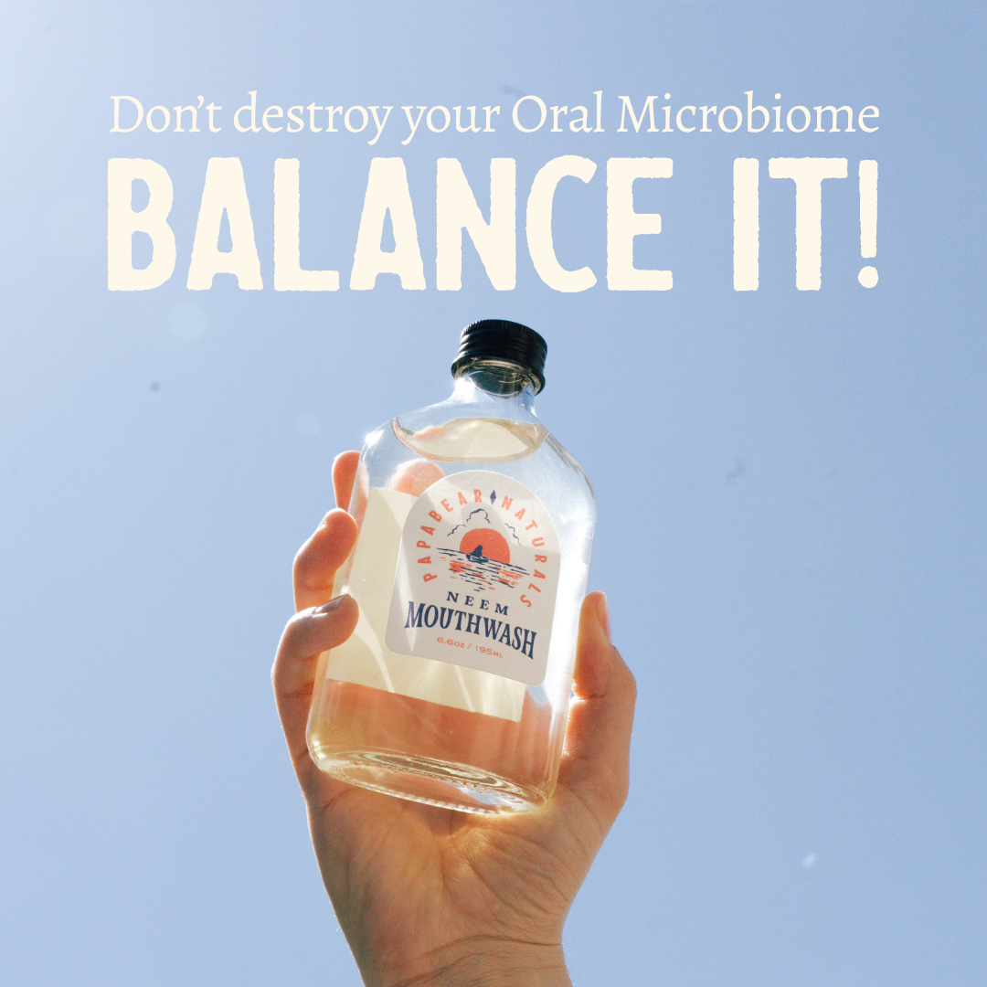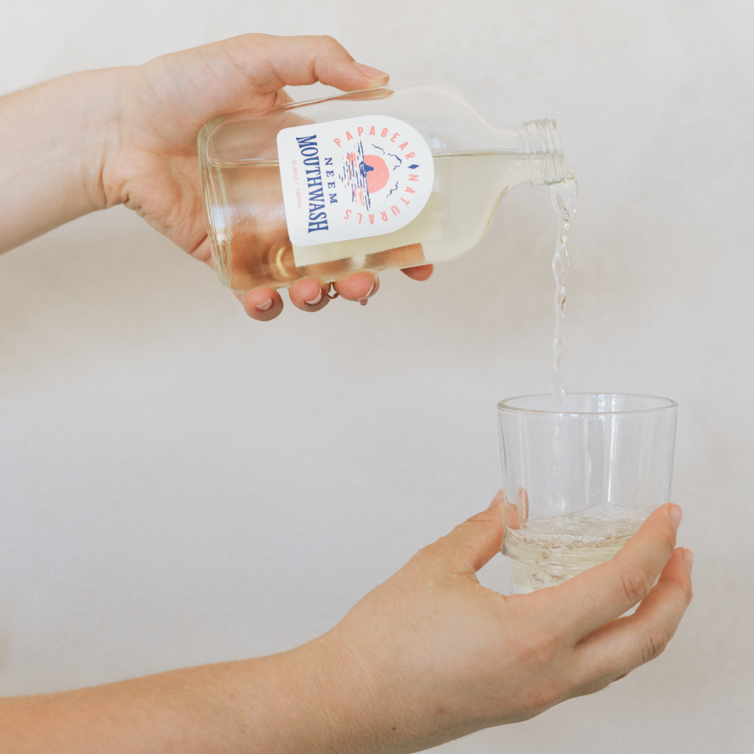 Unlike “Big Mouthwash” formulas that can disrupt your oral microbiome, our neem mouthwash promotes balance and supports your natural defenses. No cocktail of synthetics—just a tiny amount of potassium sorbate (the wine-safe preservative) to protect organic ingredients and freshness. Packaged in recyclable glass—two 6.6-oz bottles.